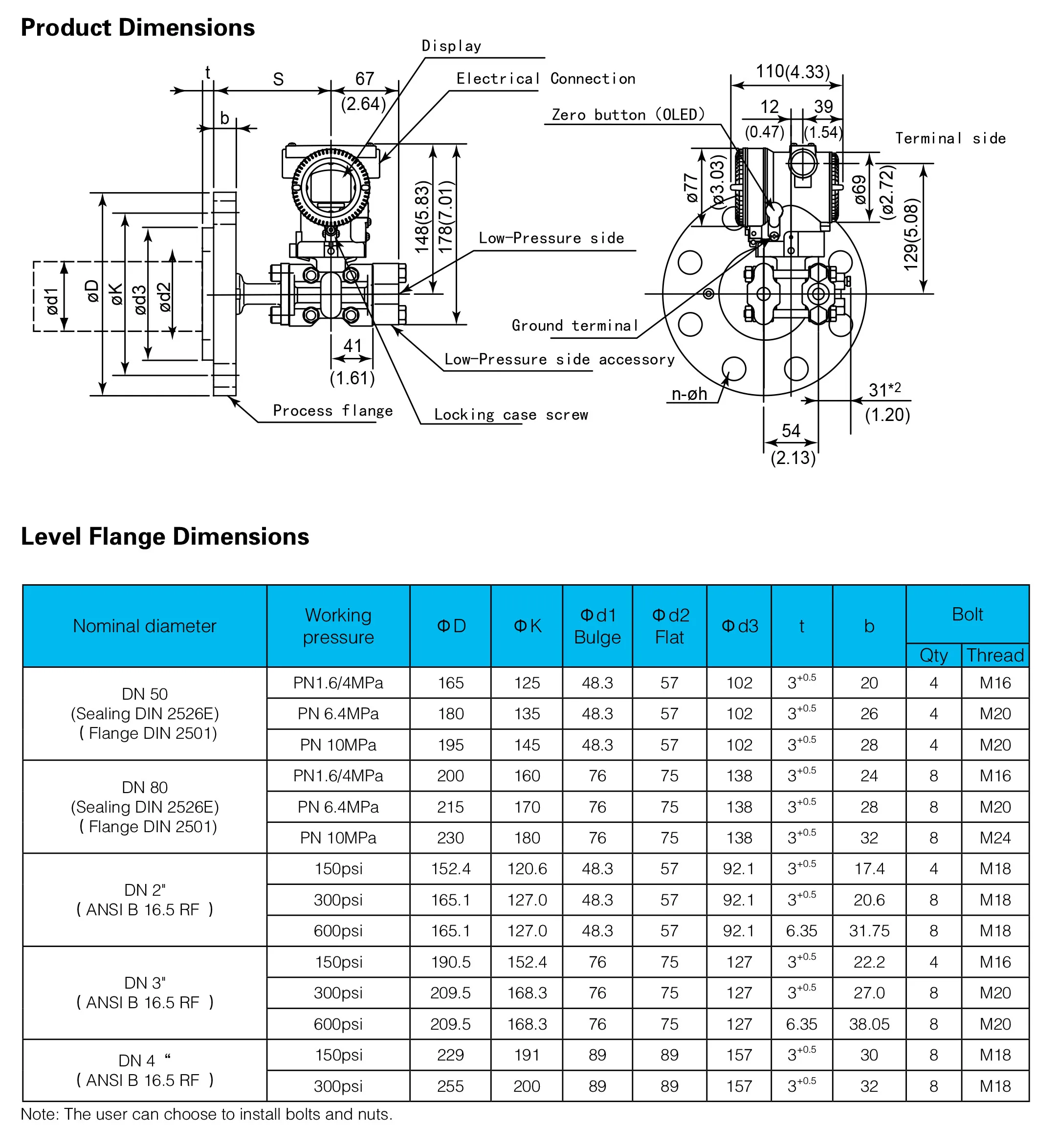 Process Connection | Flange DN 50/2",DN 80/3",DN 4". |