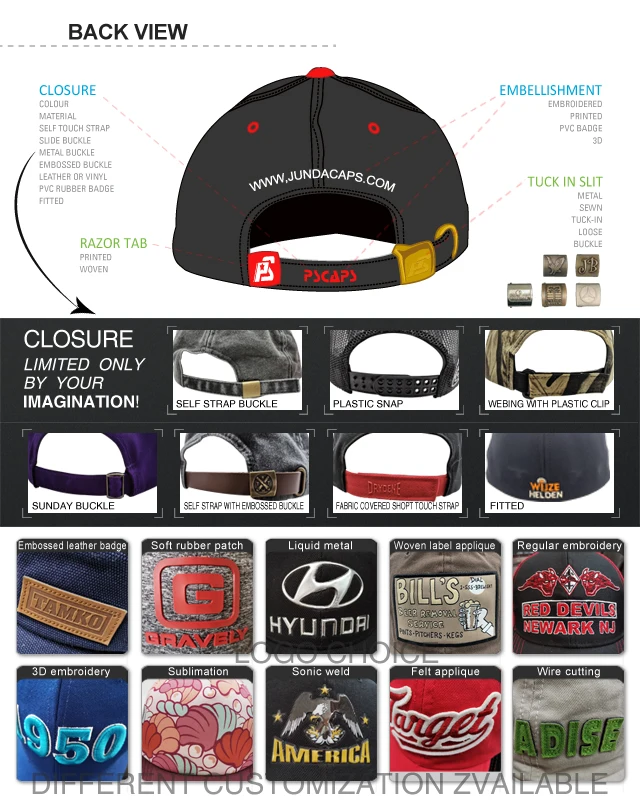 Back closure | 7 hole plastic snap, velcro, brass/metal buckle and gromment, adjustable,tuck strap with slide closure, and so on |
