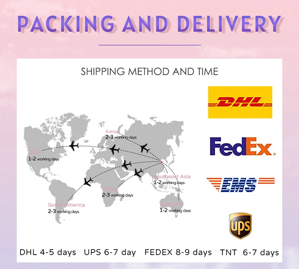 Q3: When can I receive the package after I pay? A3: After we ship the package out, it take about 3-7working days to delivery.