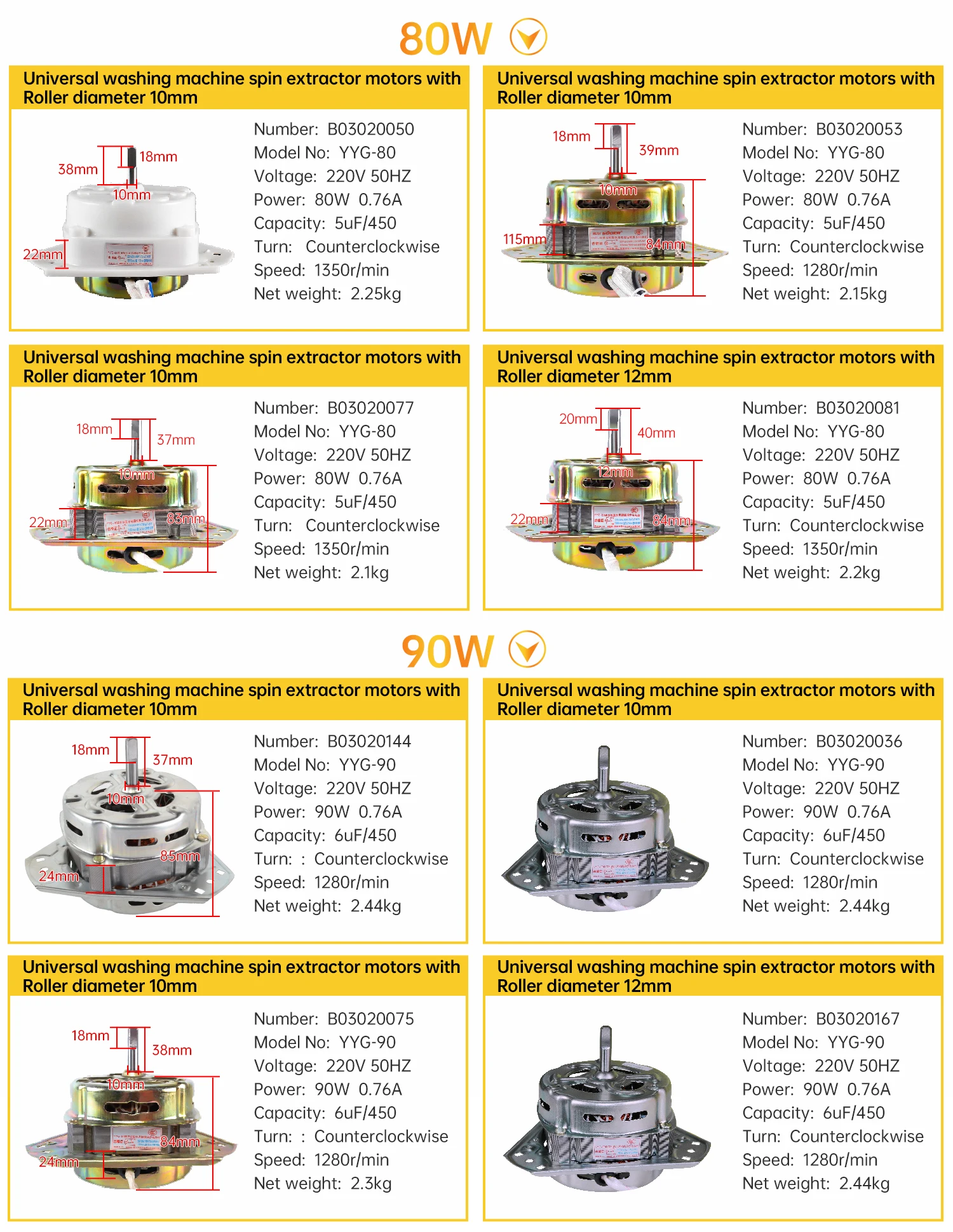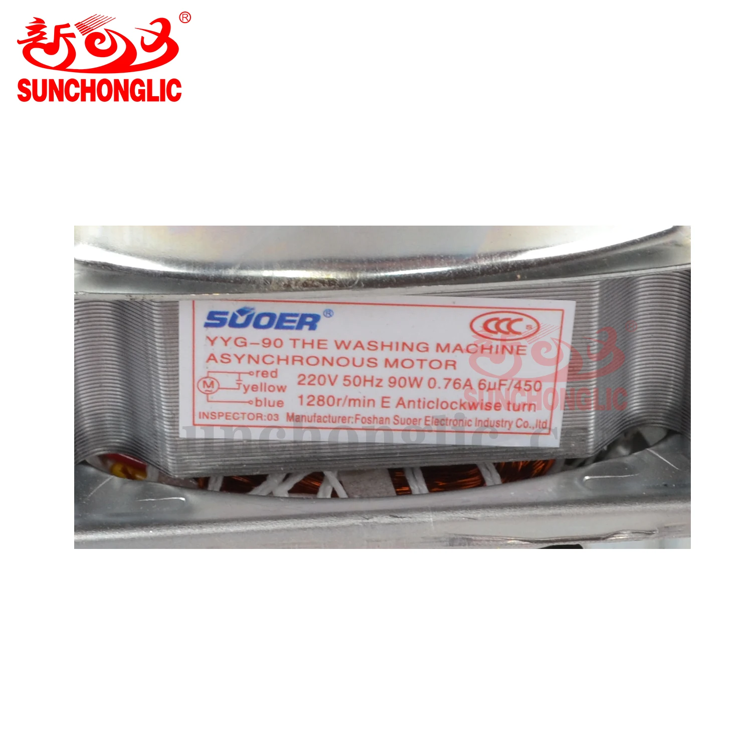 B03020144 | Washing machine spin motor | 90W | 220V | 50Hz | 10mm | Copper wire | 1280r/min | 6μF/450V |