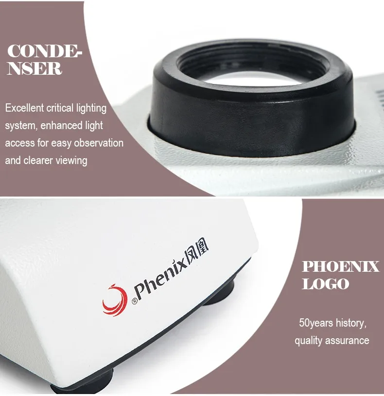A: Our brand "PHENIX"is popular and well regarded China. We strive to provide quality and customer satisfaction. Our products are from the same Lines that make OEM and ODM for Leica, Zeiss, Nikon and Olympus. We make our own designs, software and institute a rigorous quality control to insure that production with different manufacturers are obeying the ISO9901/2000 standards as well as to guarantee our products are all of the high quality you have come to expect from Phenix Microscope! A full 5 year factory warranty is also proof of our commitment to our esteemed clients, as well as the faith we have in our product.