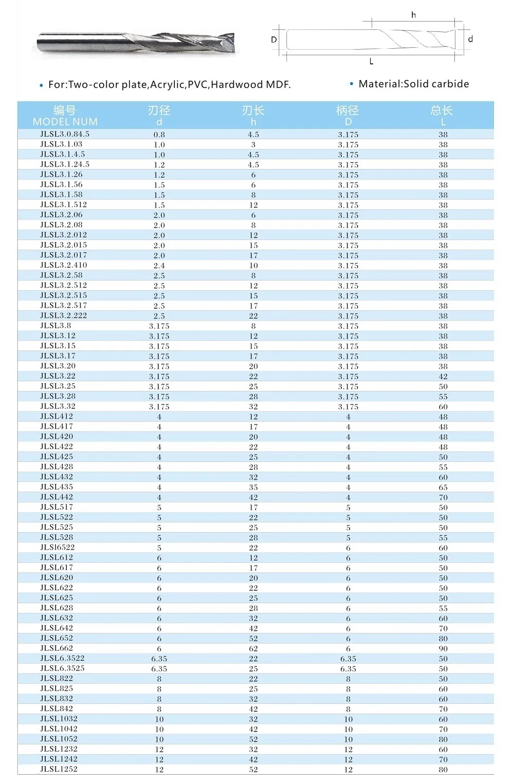Material | Solid Carbide Spiral Router Bit |