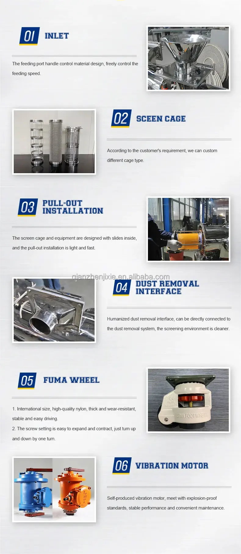 QZ-18-65 | Q235A Carbon steel | 180mm*650mm | Stainless steel or Nylon screen |