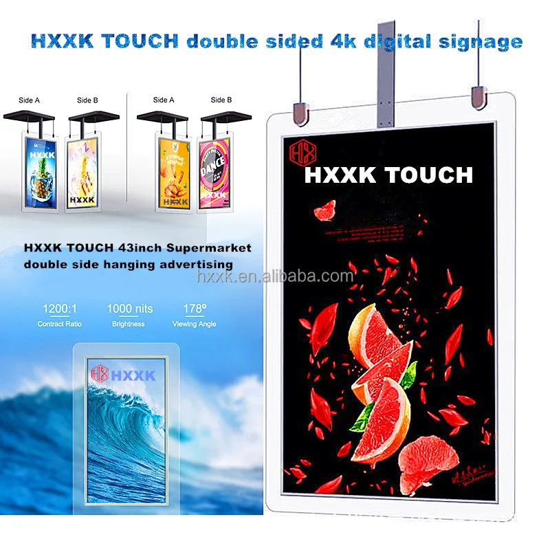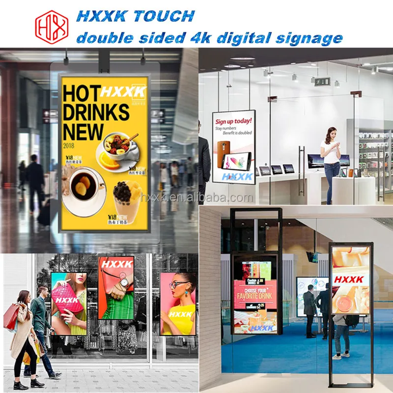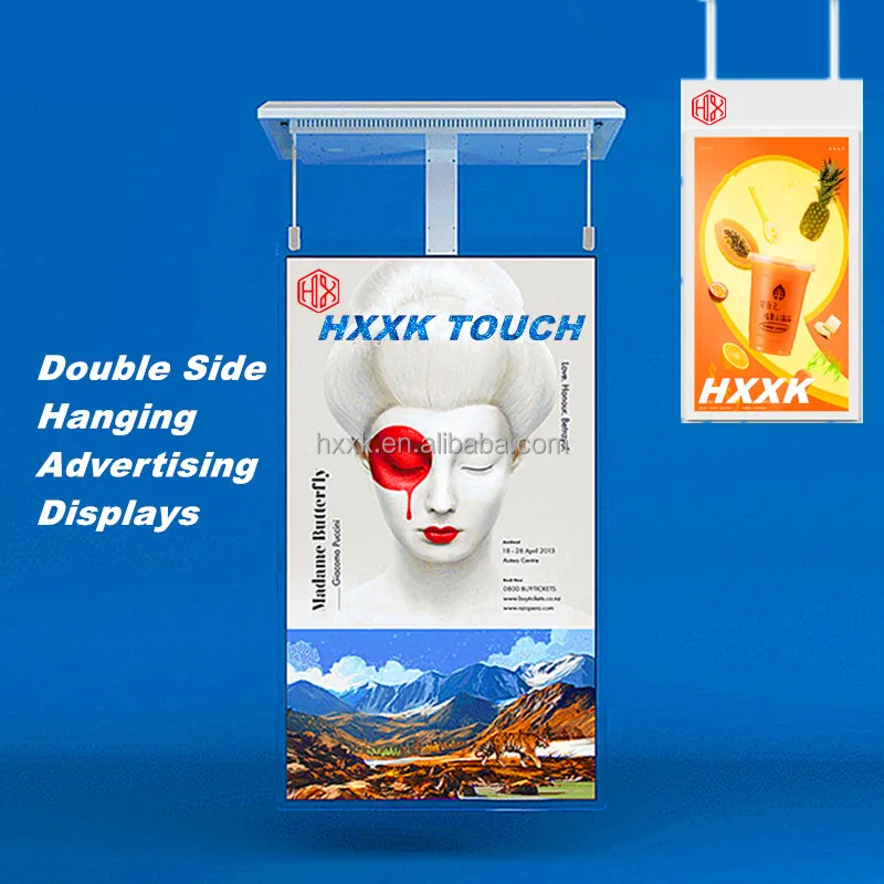 HXXK Hanging LCD Monitor Double Side Window Display Vertical Ceiling Mounted Double Sides Digital Signage Lcd Shop Retail Window