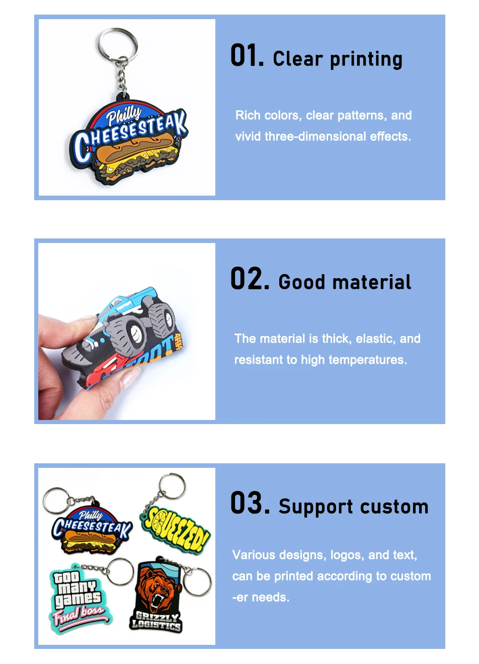 Custom PVC Soft Rubber Product OEM & ODM Select Eco-friendly PVC Raw Material ●Low odor ●Wear-resistant ●Good elasticity ❒ CUSTOMIZATION PROCESS ❒ PRODUCT USAGE ❒ PRODUCT DETAIL ❒ PRODUCT DISPLAY ❒ CRAFT DISPLAY ❒ MORE CUSTOM SOFT PVC PRODUCTS WE HAVE Soft PVC Keychain Soft PVC Doll Soft PVC Refrigerator Magnet Soft PVC Luggage Tag Soft PVC Coaster Soft PVC Bottle Opener ❒ WHY CHOOSE US ❒ ABOUT US NEED MORE DISCOUNTS? Become Our VIP Customer, There Will Be More Discounts! |