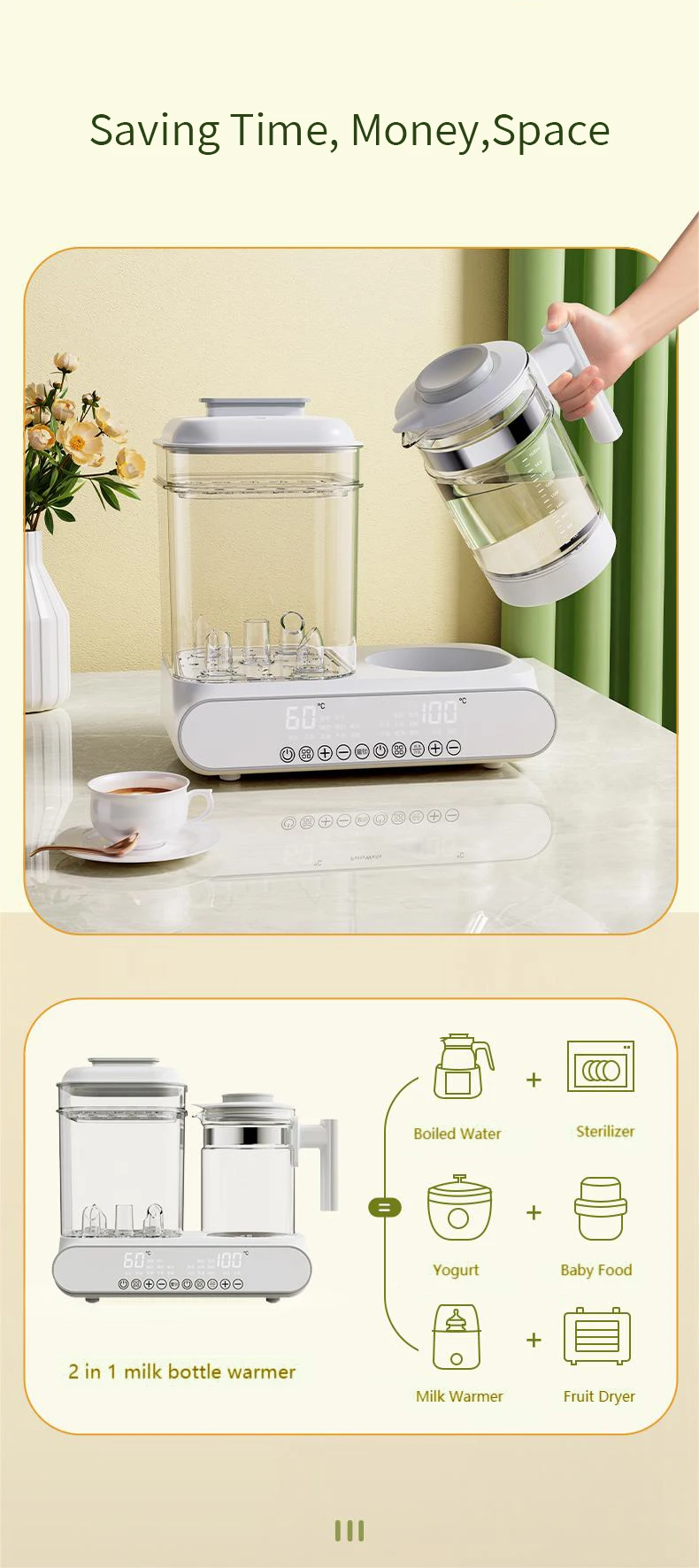 Function | un-Freeze/Milk Warmer/Bottle Sterilizer/Stew Food/Boiled Tea | ||||||