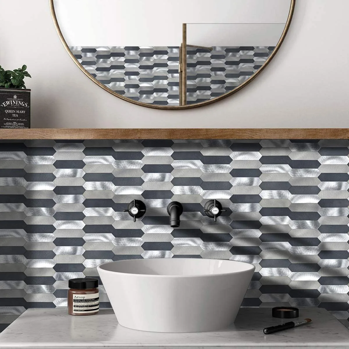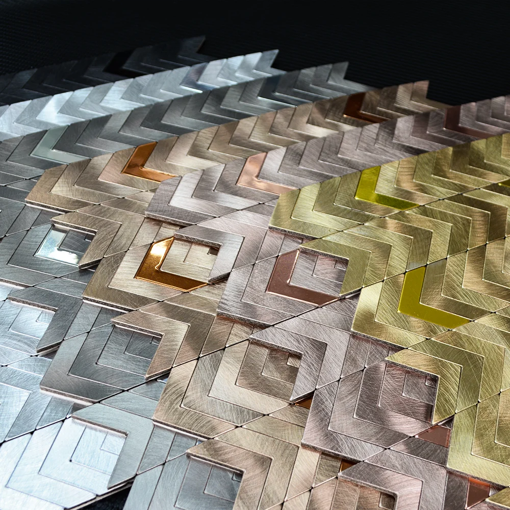 Product | Gray brushed mosaic kitchen backsplash aluminium peel and stick wall tile for home decor |
