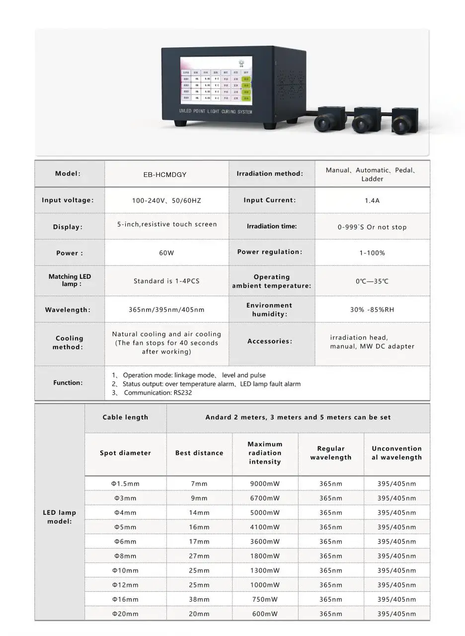 1. What's the whole UV LED curing system including?The whole UV LED curing system including UV LED lamp+ UV LED driver+ electric cabinet and control system+water chiller