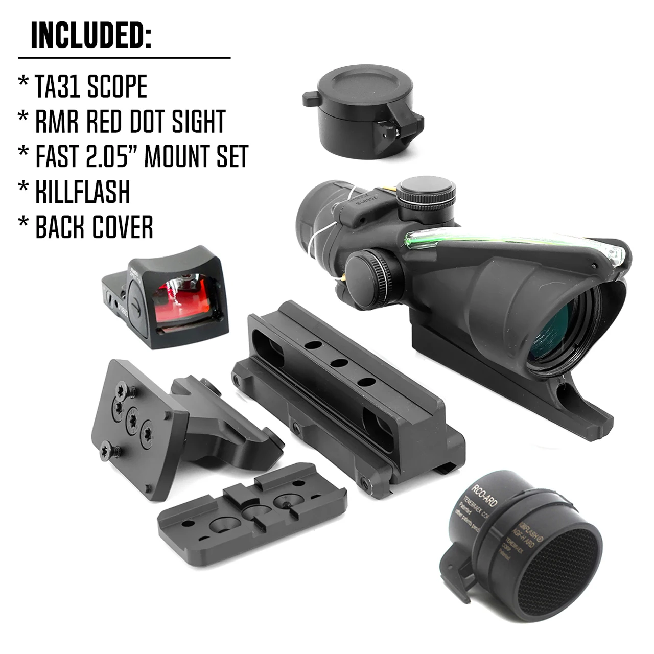 Spec precion Tactical TA31F 4x Fiber Optics Illuminated RedGreen Chevron Reticle 4x32 With Mini Red Dot Sight With Offset Mount