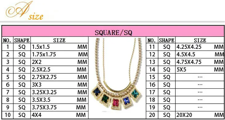 Shape | Heart, square, pear, round, marquise, oval, rectangle, butterfly, triangle, flower, tapper, star, octagon etc. |