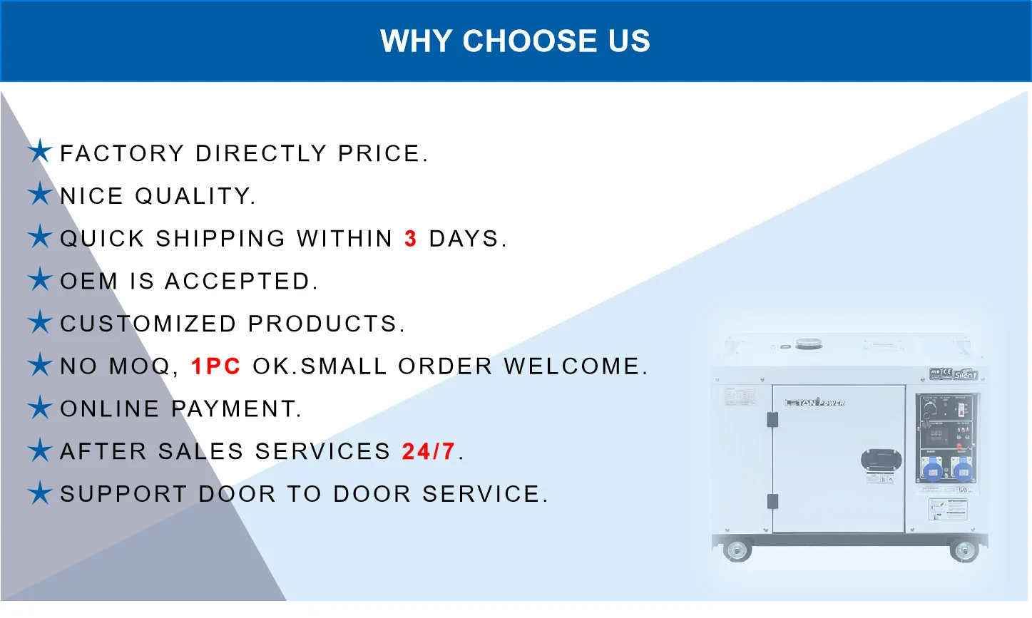 Delivery time | 20 days after payment | 30 days after payment | Negotiation required | |||||