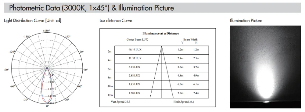 Photometric Data (3000K, 2x100°) & Illumination Picture