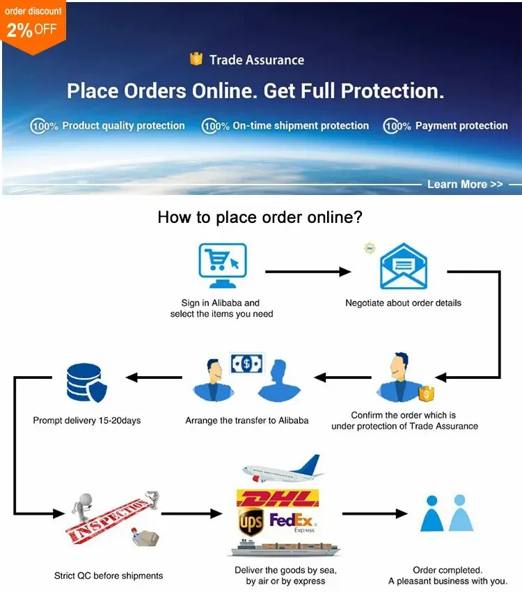 5:How about the sample time?What is the payment? Sample time:3~10days after order & samples confirmed. T/T,30% deposit, and balance is after the order is finished. Also we accept the PAYPAL, west union.