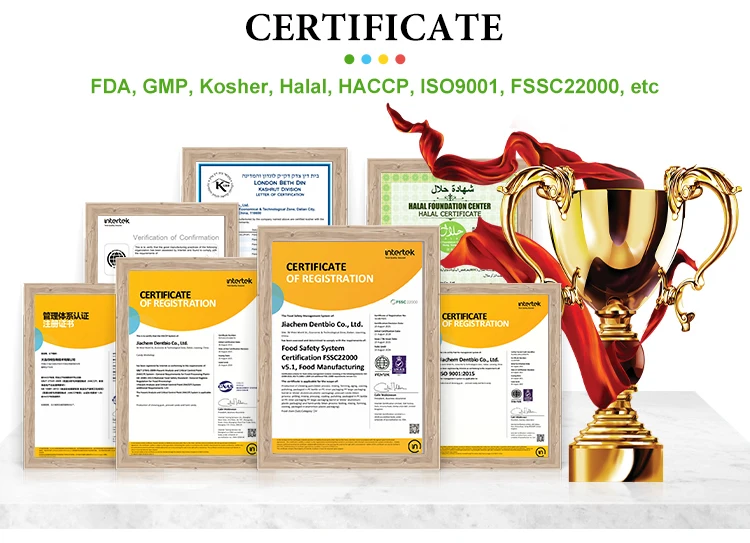 Certificate | GMP,HACCP, ISO9001, ISO22000, FASSC22000 |