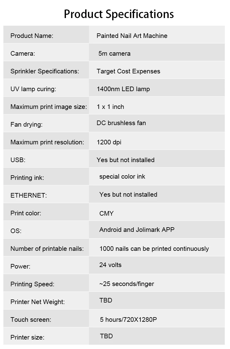 Product Name: | Painted Nail Art Machine | ETHERNET: | Yes but not installed |