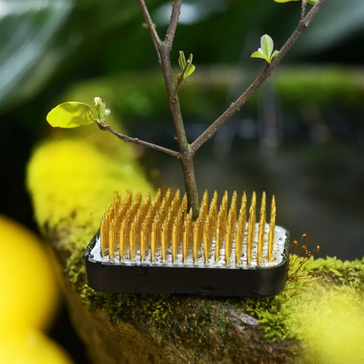 Many customers use the small Pin Frogs for wedding favor arrangements at guest tables as well as for small intimate flower arrangements in their homes. These Kenzan can be secured to the bottom of your flower arrangement containers with the use of a little silicone adhesive. Another major use of these Pin Frogs is in the pottery where flower arranging cups and containers are now being made to hold water and flowers. All Kenzan should be secured to the bottom of the Floral container for Maximum Holding Power and Safety .