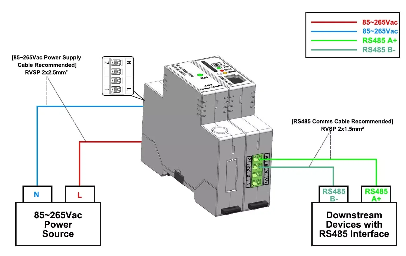 ● Downstream Communication: RS485