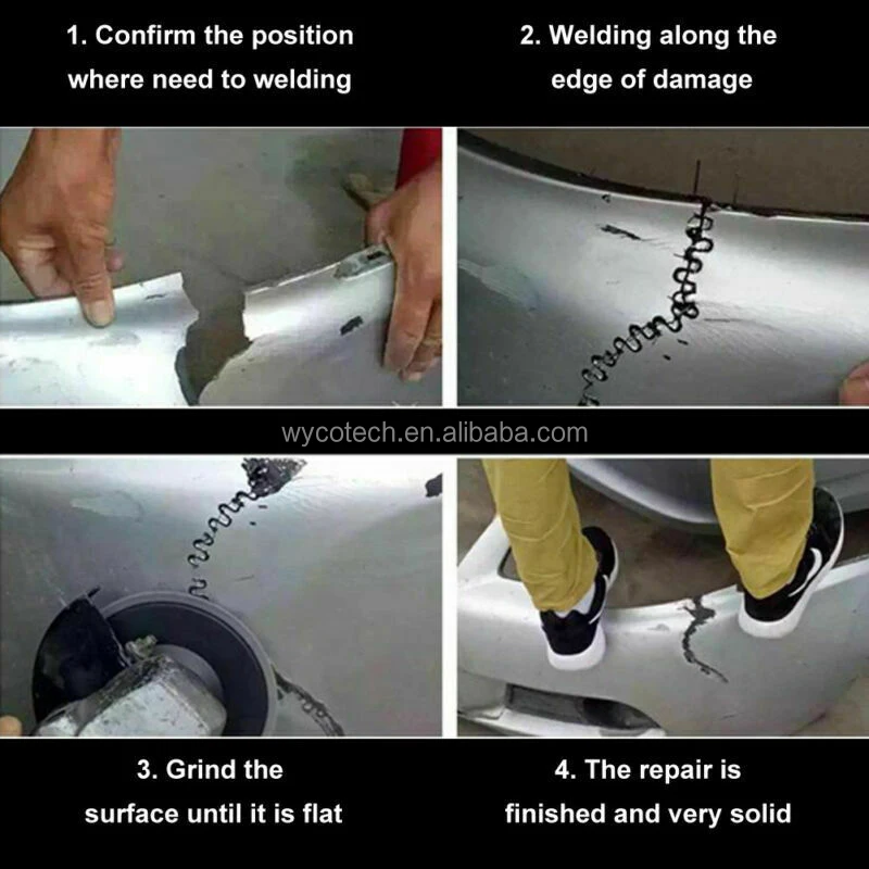 repairing and reinforcing all parts of automobiles, such as bumpers, dashboards, lamp holders, plastics rings, and daily