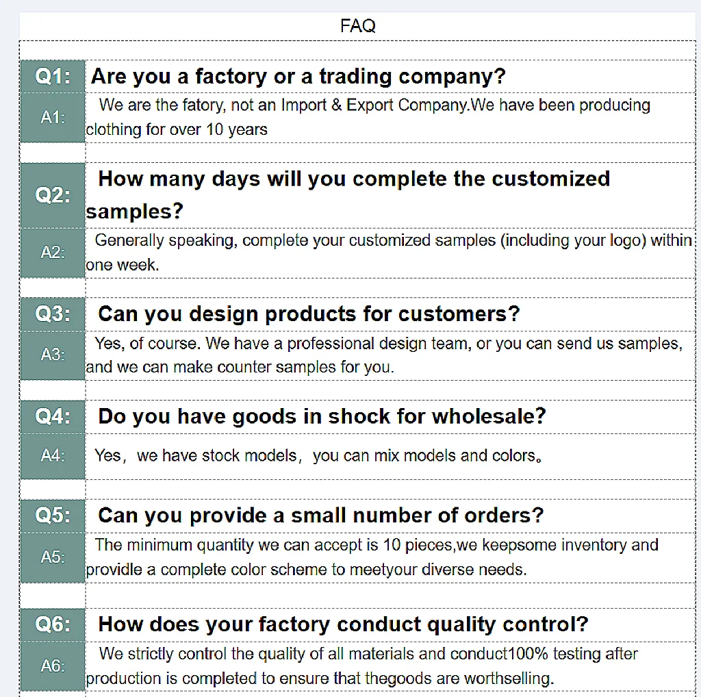 Guangzhou Duojin Clothing Co., Ltd. is a specialized uniform manufacturer, located in Guangzhou, Guangdong Province. We have been producing uniforms for 11 years. We are a small and medium-sized enterprise. We have about 400 workers in our factory, and they are good at making uniforms. In addition, we also have some good partners in Guangzhou who can work together to complete orders. Guangzhou is a big city of garment production, so the labor cost is not high, especially some complex uniform production has unit price advantage, which is one of our advantages. We have multiple sales people online to process your order and track product quality. Our sales manager Ren Xiaofeng has more than ten years of experience in designing clothes and trading with foreign customers.