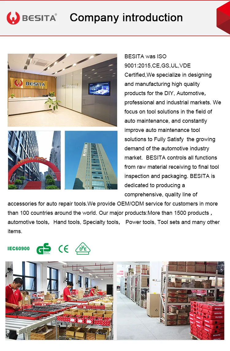 Perfect Solution For Auto Tools, BESITA Founded in 2010,BESITA was ISO 9001:2015 Certified, CE,GS,UL,VED Certified,We specialize in designing and manufacturing high quality products for the DIY, Automotive,professional and industrial markets.