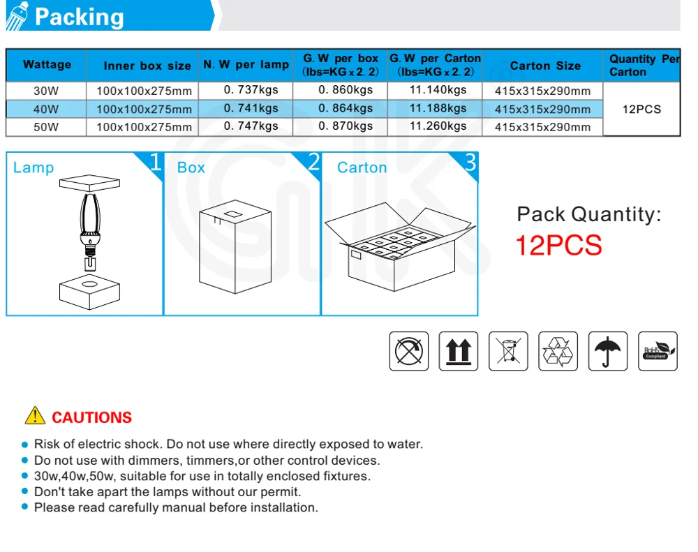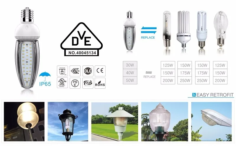 A: Usually LED corn lamps are used to replace metal halide, high-pressure sodium with 3-4 times, for example, our 12w is to replace 50w; 20w replace 75w; 45w replace 175w; 54w replace 200w.