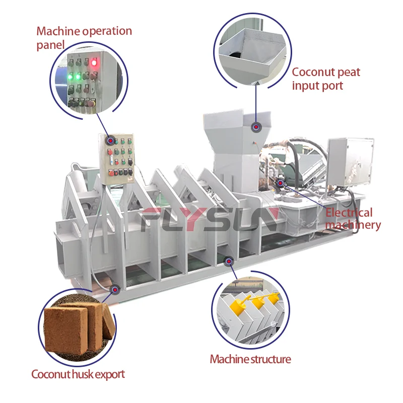 We have many successful working sites , If you are interested in our cocopeat block making machine, please contact with us. we will suggest you suitable machine as you required.