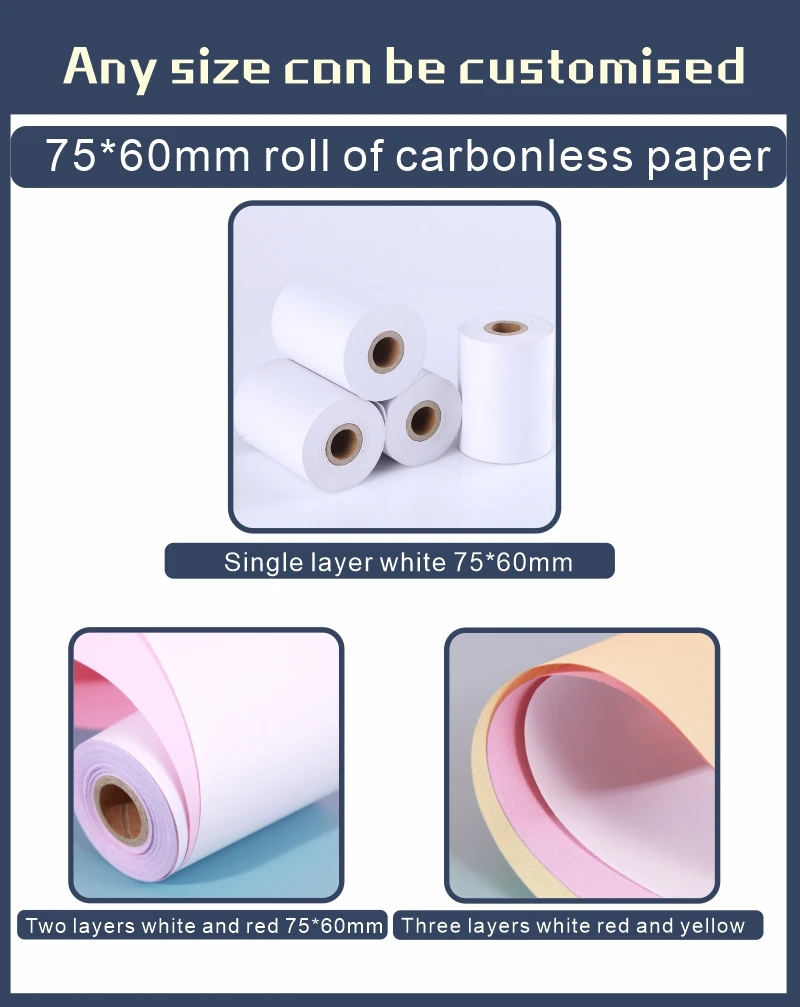 Carbonless Copy Cash Register Paper | 1~3 ply | 75*60 | 100rolls/box | |