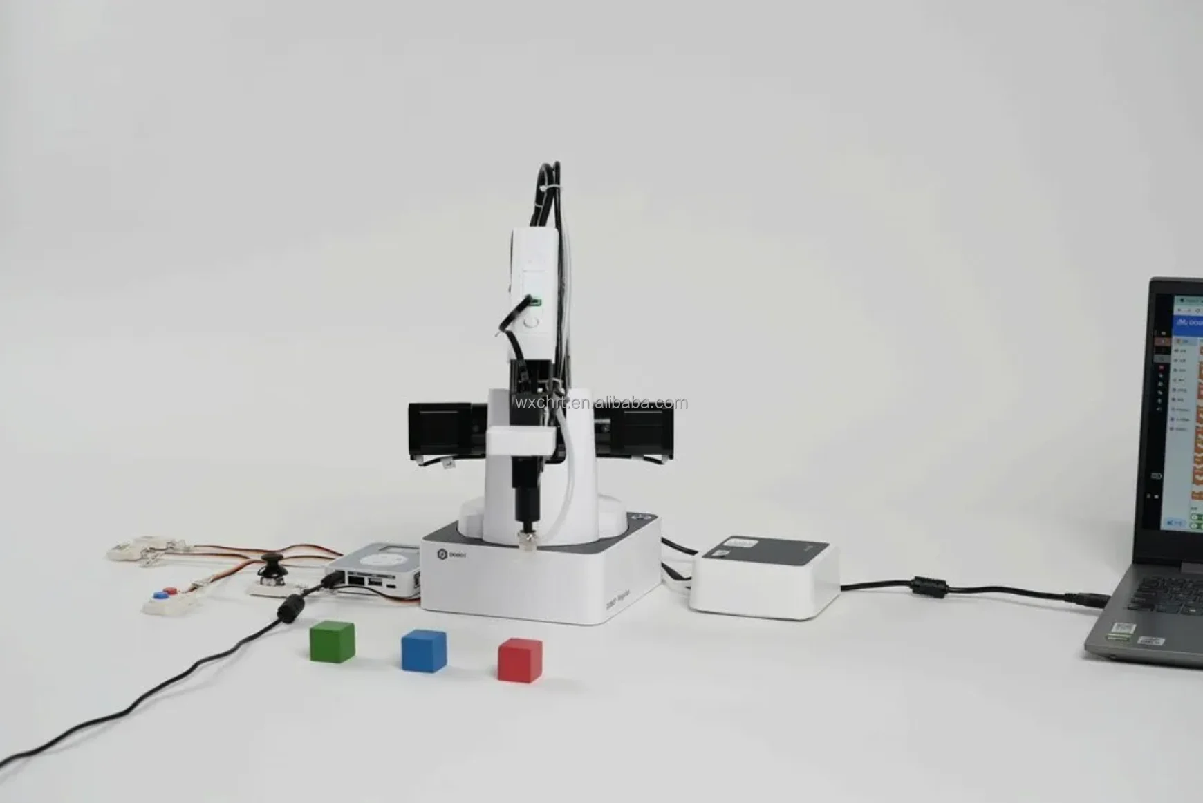 As an entry-level learning suite for AI, Basic AI Kit for DOBOT Magician features Arduino Mega 2560 control board, LED indicator, joystick, switch button, and voice and visual recognition modules. We provide plentiful courses to help students handle the robot arm via programming and easily get the basic knowledge of AI, thus cultivating their innovative thinking and developing a creative robotic culture.