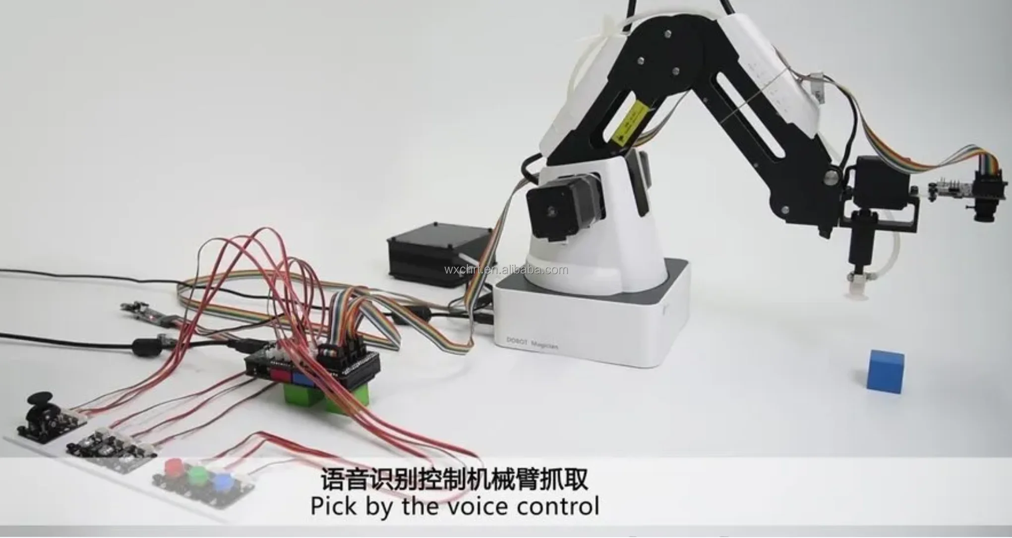 Abundant electronic modules include a programmable control board, various sensors, voice, and visual recognition. Control the lights and DOBOT Magician by button, joystick, and voice recognition to help students explore artificial intelligence in every aspect.
