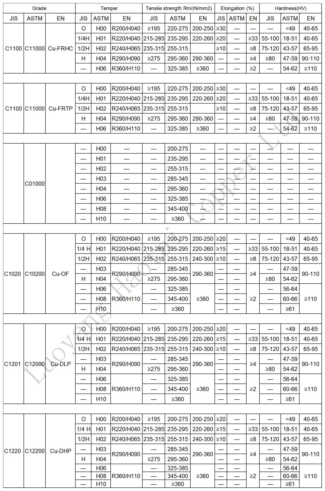 Material | C10100,C10200,C10300,C10400,C10500,C10700,C10800,C10910,C10920, C10930,C11000,C11300,C11400,C11500,C11600,C12000,C12200,C12300, C12500,C14200,C14420,C14500,C14510,C14520,C14530,C17200,C19200, C21000,C23000,C26000,C27000,C27400,C28000,C33000,C33200,C37000, C44300,C44400,C44500,C60800,C63020,C65500,C68700,C70400,C70620, C71000,C71500,C71520,C71640,C72200,etc | ||||||