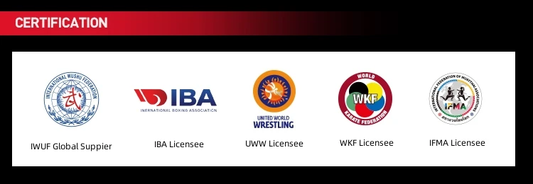 Fujian Weizhixing Sports Goods Co., Ltd. implements ISO9001:2000 standards. Our products have won approvals of AIBA, International Wushu Federation, Asian Karate Federation, Chinese Taekwondo Association, Chinese Boxing Association, Chinese Wushu Association, Chinese Karate Association, Chinese Judo Association, and Chinese Wrestling Association. Our boxing rings, gloves and helmets have successfully passed the standard inspection of the AIBA authoritative testing institute. We are the designated supplier for Karate serial products by Asian Karate Federation.