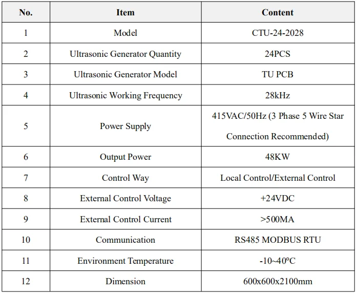 Ultrasonic Power | 3600Watts |