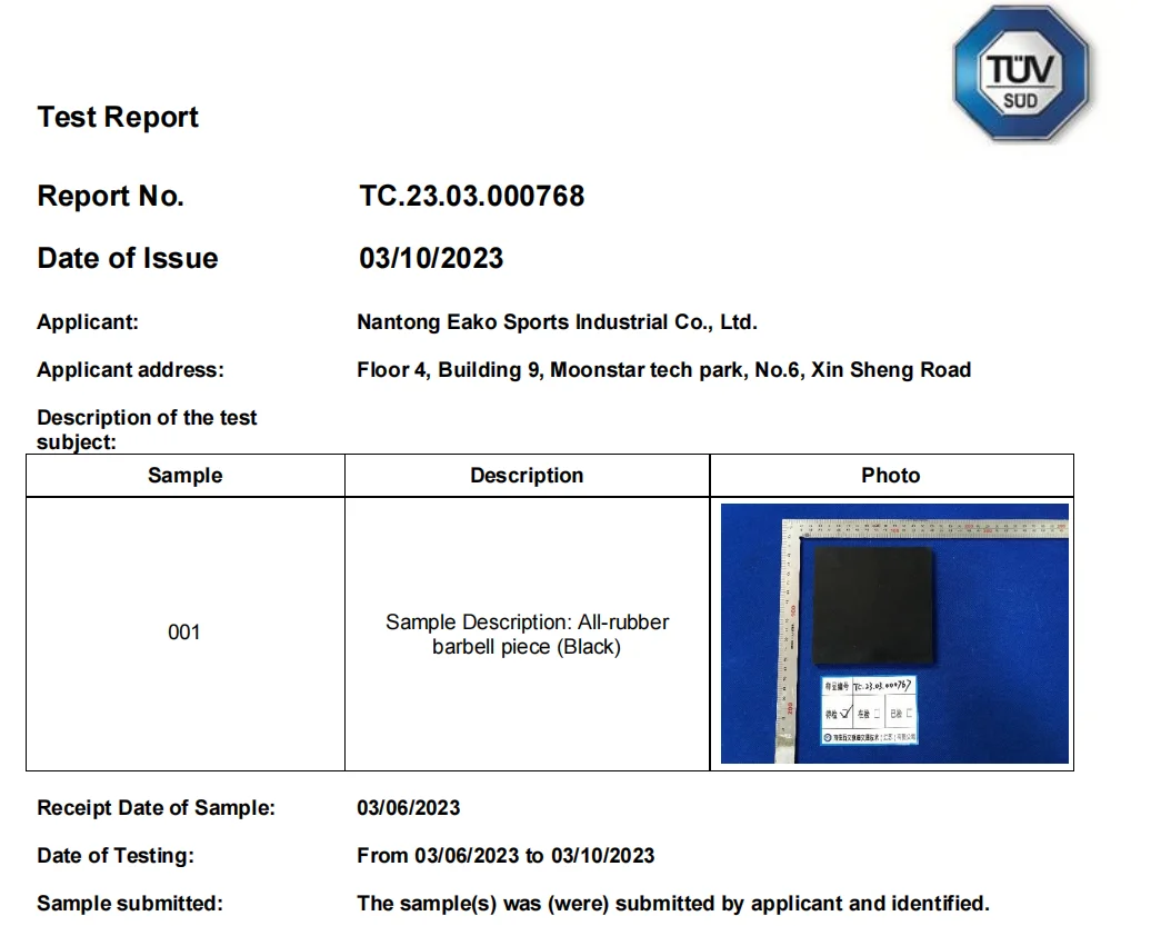 The test result was published by Nantong Eako Sports Industrial Co., Ltd. The test result only used for internal learning, internal quality control, internal product research and development, provide certification for our customers, etc, And just for internal reference. |