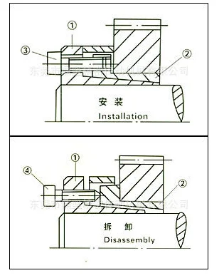 The expansion sleeve is greased at the factory and can be installed directly. When installing, first screw three bolts 4 into the screw holes of the flange of the other part 1 and spread them evenly around the circumference to open the inner sleeve 1 and the outer sleeve 2. Then place the expansion sleeve into the hub hole of the design position and tighten the bolt with the force gauge. The method of tightening is to screw each bolt to 1/4 of the rated torque at a time. The order of tightening is bounded by the slit. The left and right cross symmetry is tightened one after the other to ensure that the rated torque value is reached.