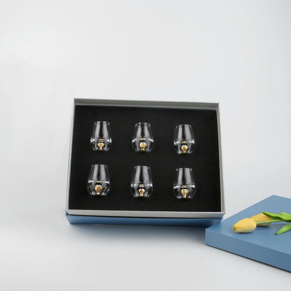 Mini sublimation gold foil tumbler blue boston thick bottom high end handmade wine souvenir shot glass gift set