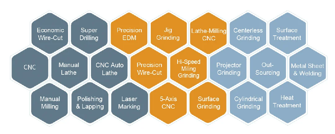 CNC Machining: 0.005 Turning: 0.005 Grinding(Flatness/in2): 0.003 ID/OD Grinding: 0.002 Wire-Cutting: 0.002 | ||||||||