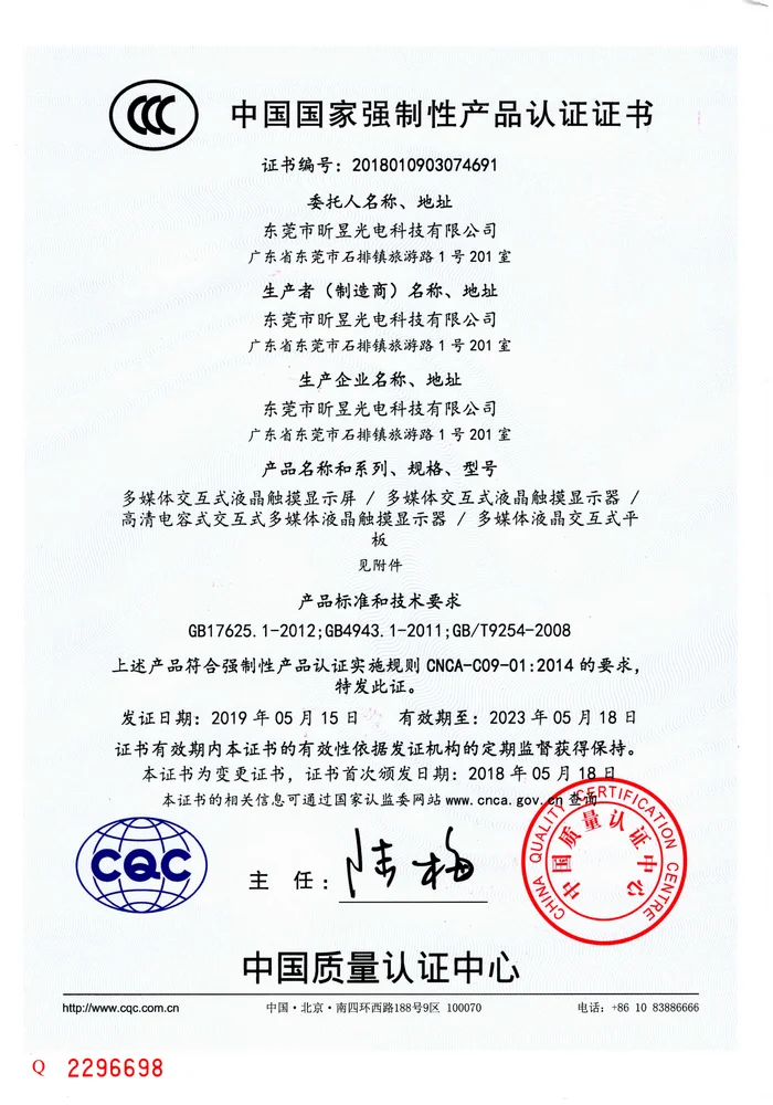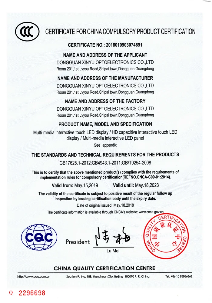 Material | Aluminum Alloy Frame | Screen Size | 43’’/50’’/55’’/60’’/65’’/75’’/86’’ | |||