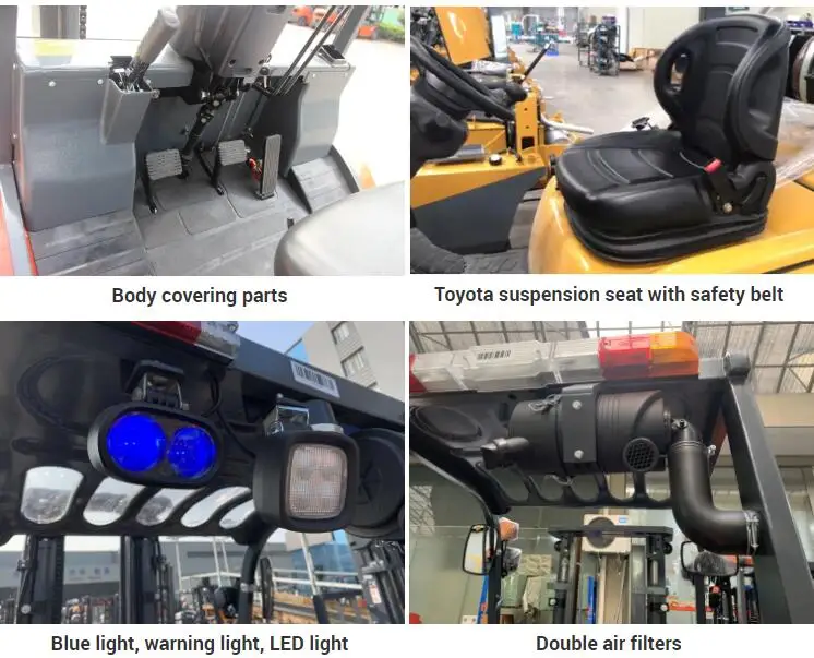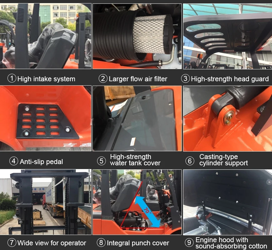 . LPG & Gasoline combustion fully, improve the life of engine three times. It`s more clean than Diesel Forklift,and can work longer than Electric Forklift.