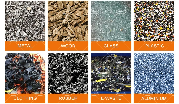 1.Metal: aluminum can bundle, steel drum, car shell, color steel tile, bicycle, copper aluminum radiator, oil filter, scrap wires,cables, aluminum composite plastic panel, steel wire rope, gas tank, iron scrap, zip-top can, engine case, paint bucket,etc.