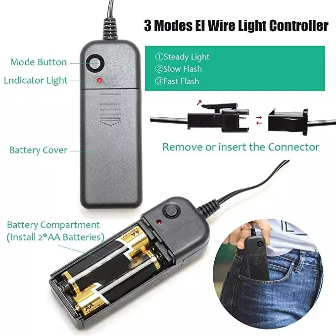 EL Wire color: | white/blue/skyblue/yellow/green/pink/purple/red/orange/lemon green |