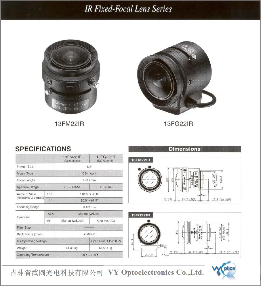 Hot Selling 1/3'' Tamron CCTV Lens 13FM22IR CS Mount Camera