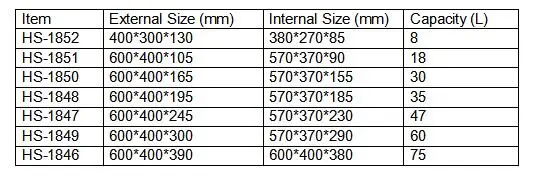 External Size(mm) | 600*400*245 | Internal Size (mm) | 570*370*230 |