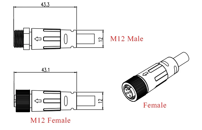 1. Metal screw threaded locking male and female connector, simple in using, convenient in installation;