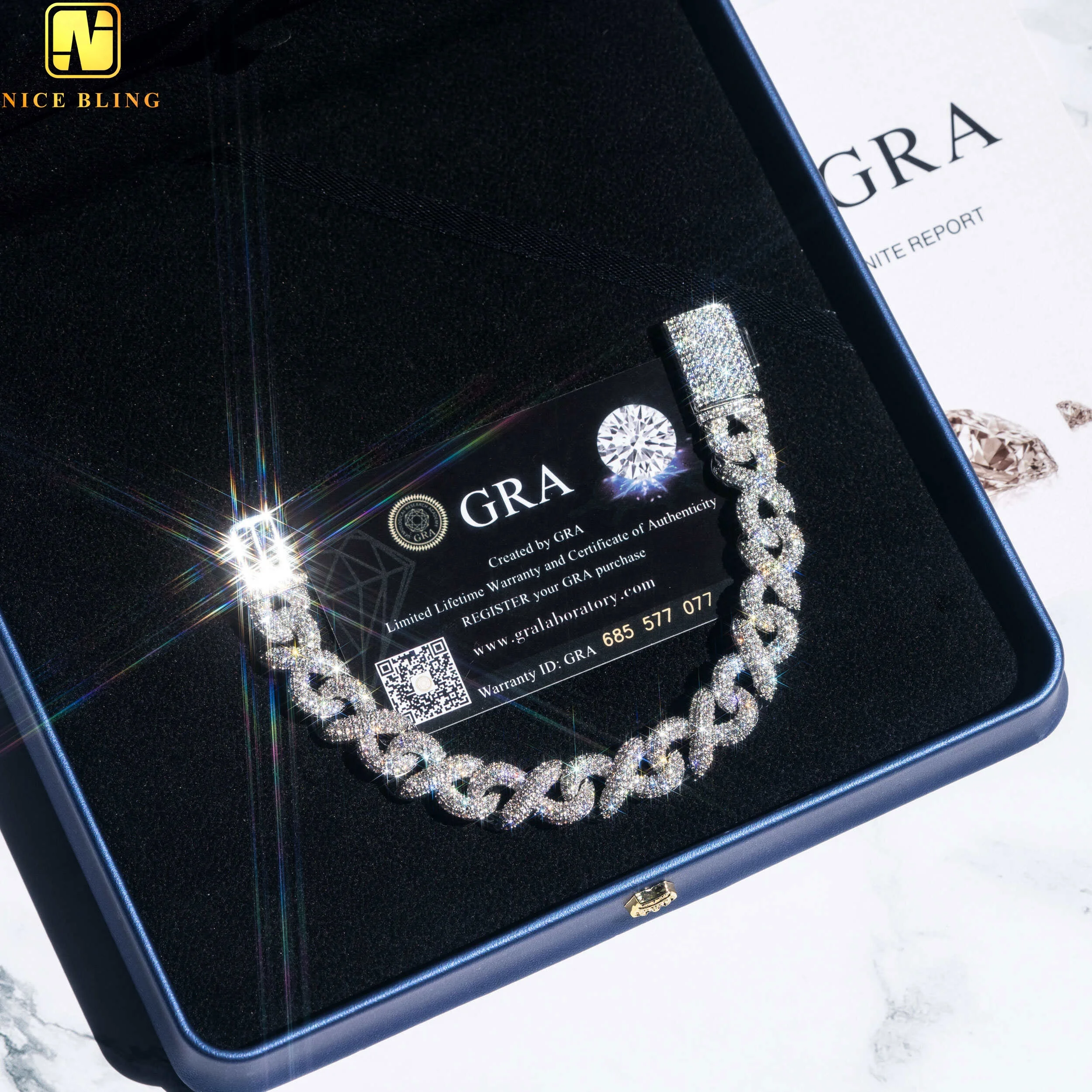 Product name | Gra certificate hip hop jewelry necklace 925 real silver micro pave d-vvs1 moissanite diamond cuban link chain infinity chain | ||||||