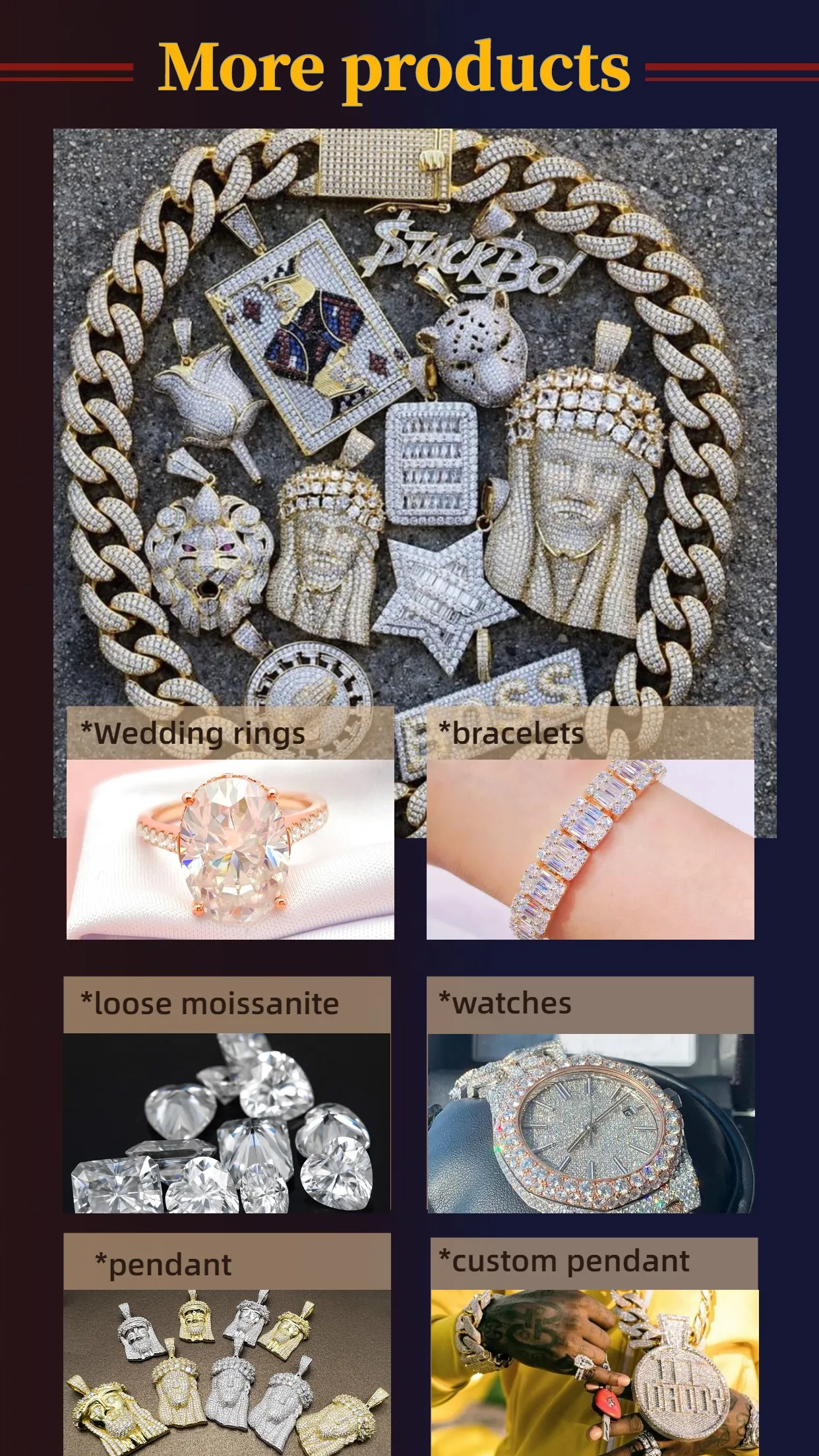 4.Q: Do you make diamond pendant? A: YES, we can make custom diamond jewelry, please let us know what level of diamond you want. | ||||||||