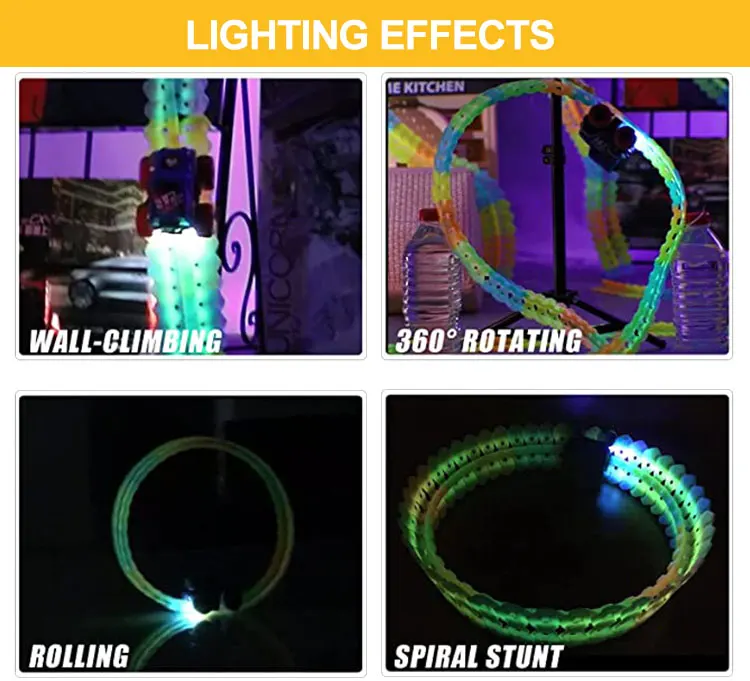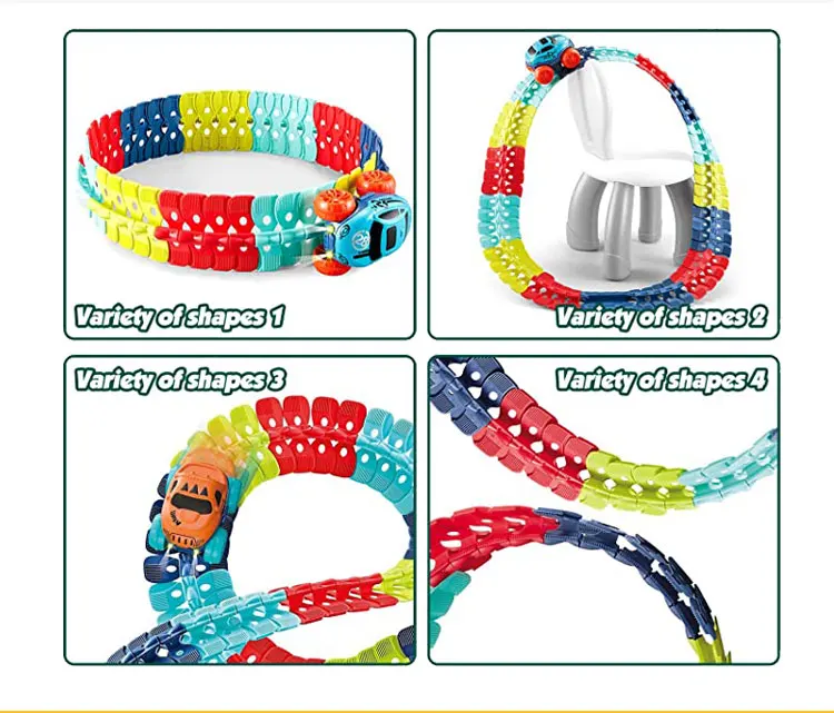 Flexible Rail Car Train Racing Track With Led Toys Cars