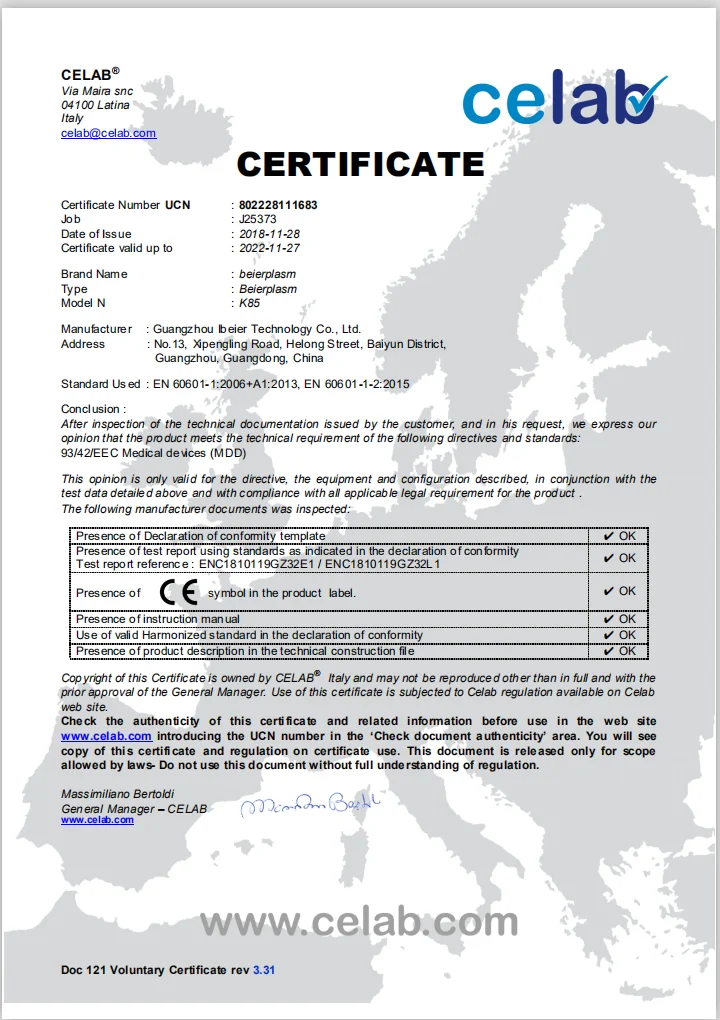 Beierplasm K85 provide 5 years warranty. Each machine with unique trace code so that we could recognize the purchase date and sources.