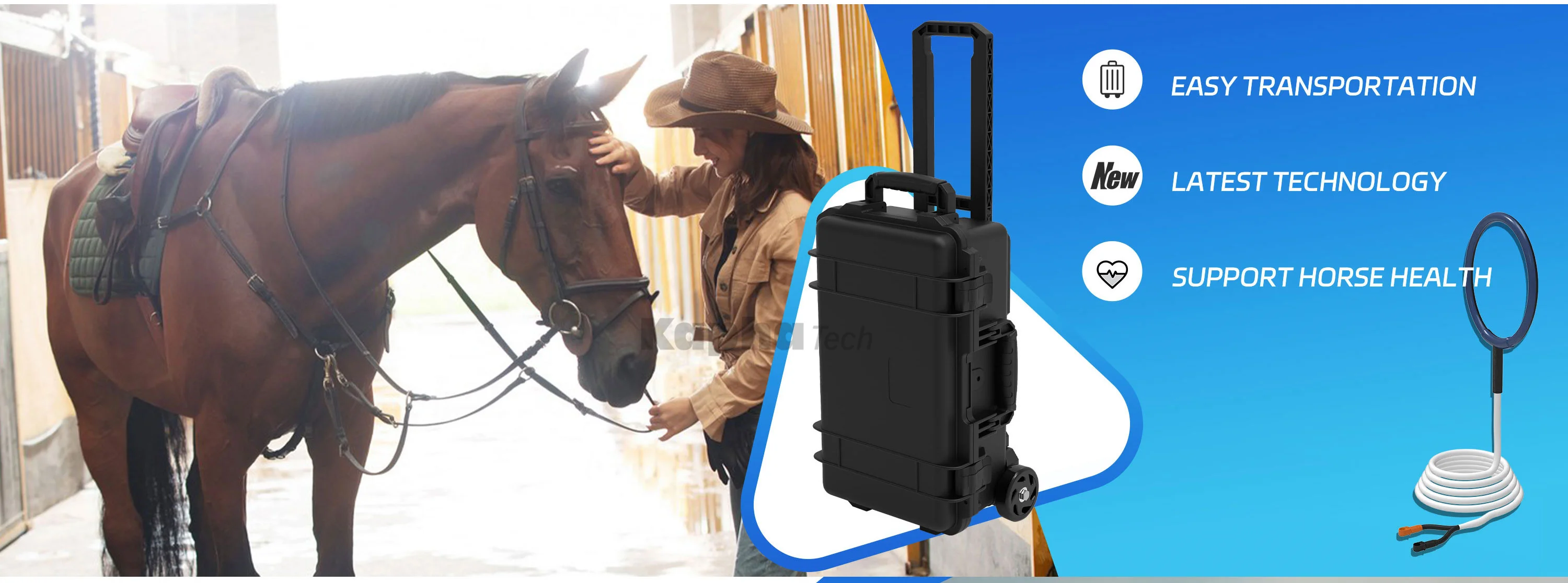 A coil sends low-frequency PEMF in waves through the horse’s body.