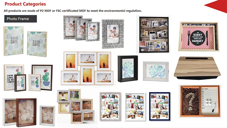 1. 20 years experience of Home Dec. Frames and Laptray. 2. 20 professional sales online, answer your inquiry within 24 hours. 3. 300 more well-trained and experienced staff. 4. 8 well-equipment production line. 5. 50 more development patent. 6. Hundreds various products series: Photo frame, clip frame, collage frame and so on. 7. Develop new series every week. 8. Hundreds free samples.