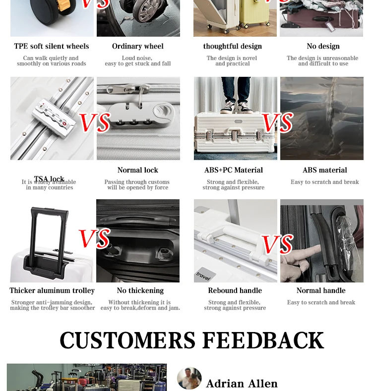 1.We have our whole set of equipment to make ABS / ABS+PC / PP Luggage, which allows us to strictly control the quality from raw material to finished products, while most of the factories are buying shells from the shell factories.